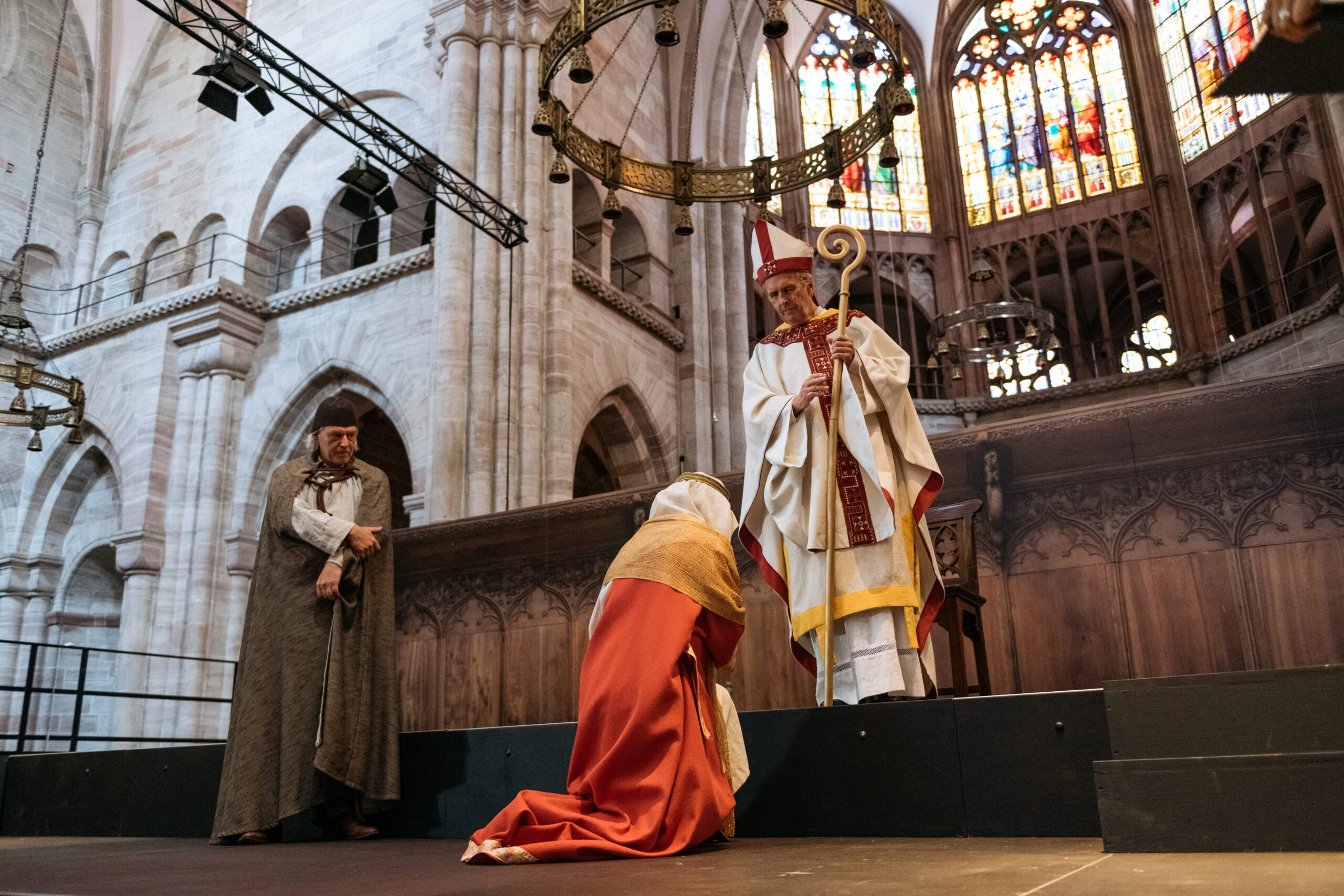 Zu sehen sind vier Szenen aus der Geschichte des Münsters: die Anfänge des Basler Münsters vor 1000 Jahren, das Konzil im Jahr 1439, der Bildersturm der Reformation um 1529 und der Internationale Friedenskongress von 1912. Das Publikum wird wie die Delegierten der Vollversammlung in Konzilsbestuhlung sitzen und die Ereignisse auf einem Bühnensteg im Mittelgang verfolgen.
